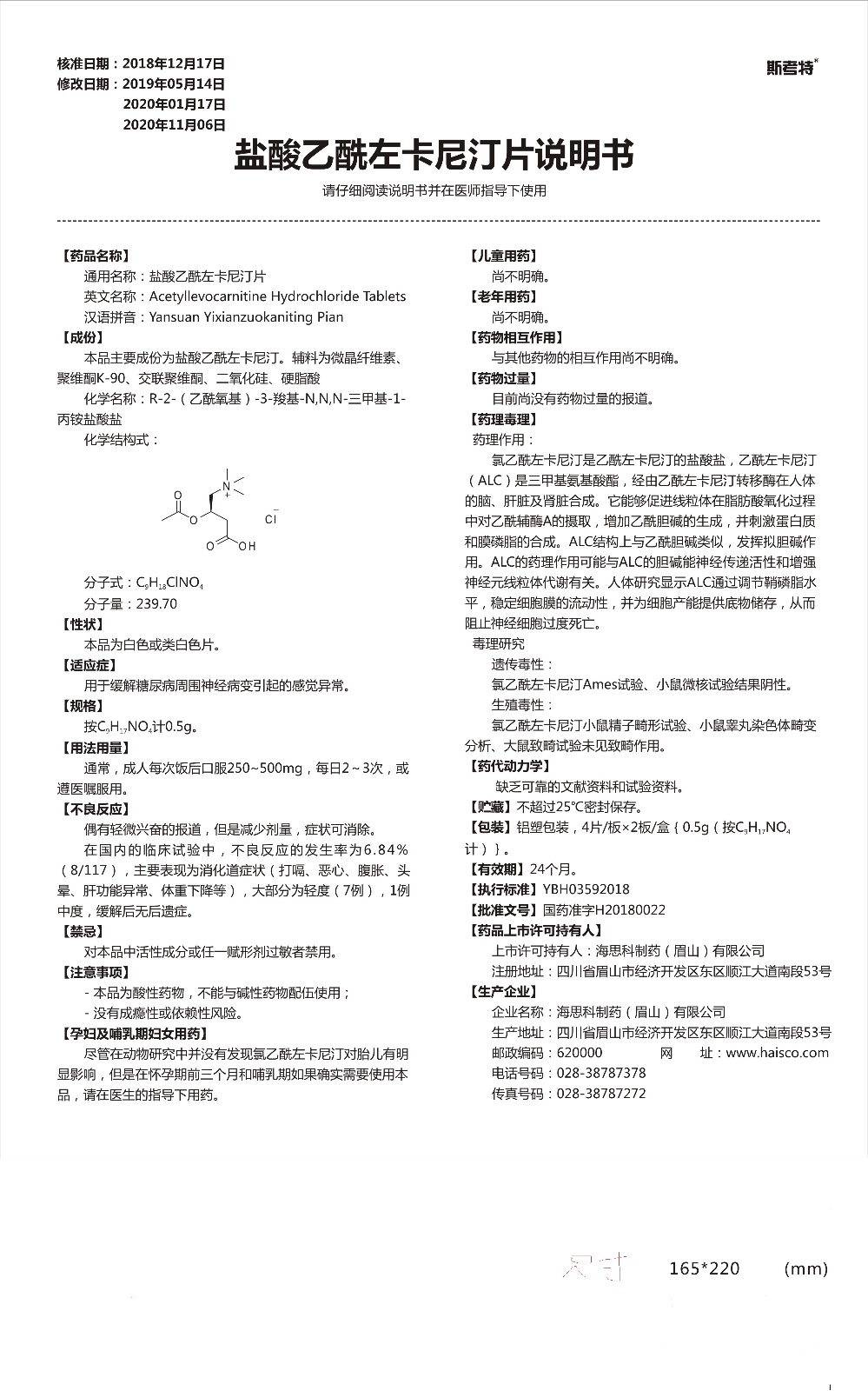 【通用名】盐酸乙酰左卡尼汀片